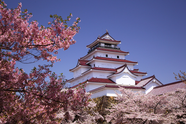 Lâu đài Tsuruga với mái màu đỏ nổi bật là một trong những điểm đến hàng đầu của thành phố
