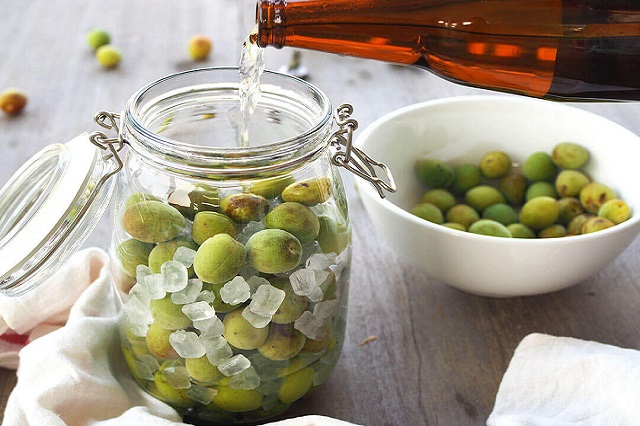 Đổ ngập rượu vào mơ và đường sau đó đậy kín nắp lại