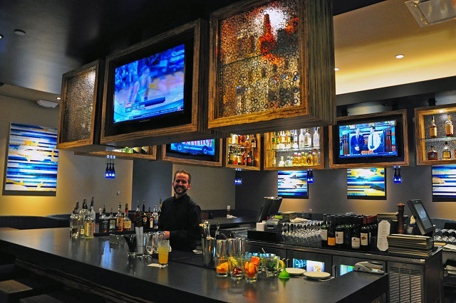 Trong nhà hàng có quầy bar phục vụ đủ loại thức uống hấp dẫn khác nhau