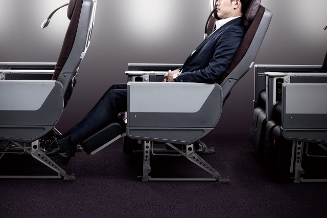 Chỗ ngồi hiện đại, thoái mái trên khoang hạng Business Class của hãng Japan Airlines