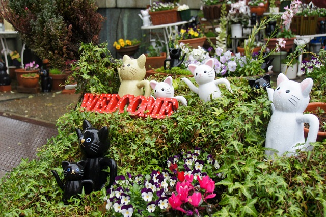 Vì nổi tiếng linh thiêng trong việc cầu duyên nên mèo may mắn ở đền luôn đi theo cặp
