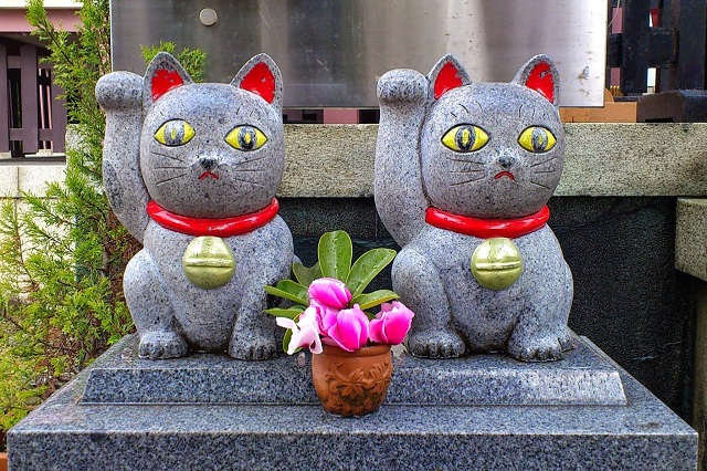 Đền Imado Jinja nổi tiếng với cặp tượng mèo may mắn đều giơ bàn chân phải lên