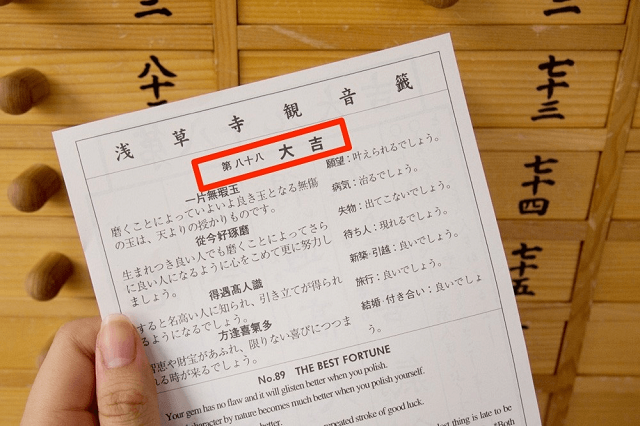 Rút quẻ là một trong những hoạt động phổ biến nhất tại chùa Asakusa Kannon