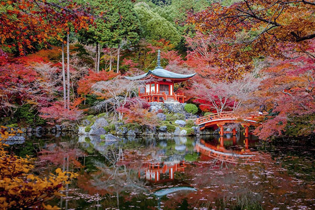 Nơi đây nổi tiếng với khung cảnh lãng mạn mùa hoa anh đào và mùa thu lá đỏ. Mỗi không gian của ngôi đền mang lại một cái nhìn mới, rất nhiều kiến trúc đẹp. Đền Daigo – Ji đã được UNESCO công nhận là một trong 17 Di sản thế giới ở Kyoto.