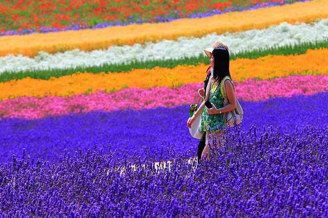 Nếu như mùa xuân Nhật Bản nổi bật với sắc hoa anh đào thì mùa hạ lại rực rỡ với hàng chục loài hoa khác. Lấp lánh dưới ánh nắng vàng đó chính là hương sắc rực rỡ của hoa oải hương, hoa hướng dương, hoa tulip, hoa hồng,… Muôn ngàn sắc thắm nở rộ như một bức thảm ngày hè tuyệt đẹp.