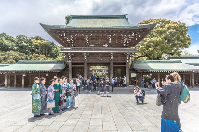 Hằng năm khách du lịch quốc tế ghé thăm đền Meiji Jingu rất đông