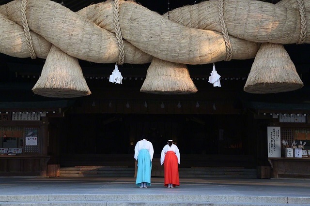 Biểu tượng của đền Izumo Taisha là sợi dây thiêng shimenawa đan bằng rơm lớn nhất Nhật Bản