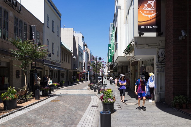 Những con đường ở khu phố mua sắm Motomachi rất đẹp nên bạn có thể đi dạo ngắm phố vào giờ thấp điểm