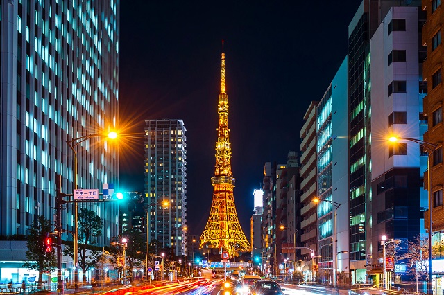 Cảnh tháp Tokyo nhìn từ xa nổi bật với hang triệu ngọn đèn lấp lánh