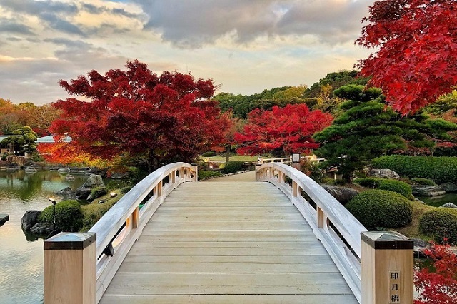 Nếu bạn đang tìm kiếm một địa điểm để vừa leo núi, vừa ngắm lá vàng lá đỏ thì cầu treo trong công viên Hoshida là gợi ý đáng tham khảo. Để đến được cầu treo, bạn sẽ mất khá nhiều thời gian đi qua hết các cung đường. Dù vậy, khi đứng trên cầu, bạn sẽ được ngắm nhìn một vùng trời rực rỡ sắc màu trải dài mênh mông. Đó là một phần thưởng xứng đáng để bạn bỏ thời gian và công sức để khám phá đấy.