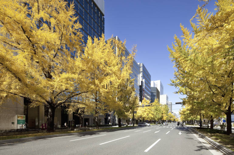 Nếu bạn lười rời khỏi trung tâm thành phố, hãy đến check in lá vàng tại đại lộ Midosuji